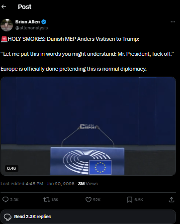 One of the most widely shared moments in this ongoing saga occurred in the European Parliament, where Anders Vistisen, a Danish Member of the European Parliament (MEP), directly addressed Donald Trump’s comments.