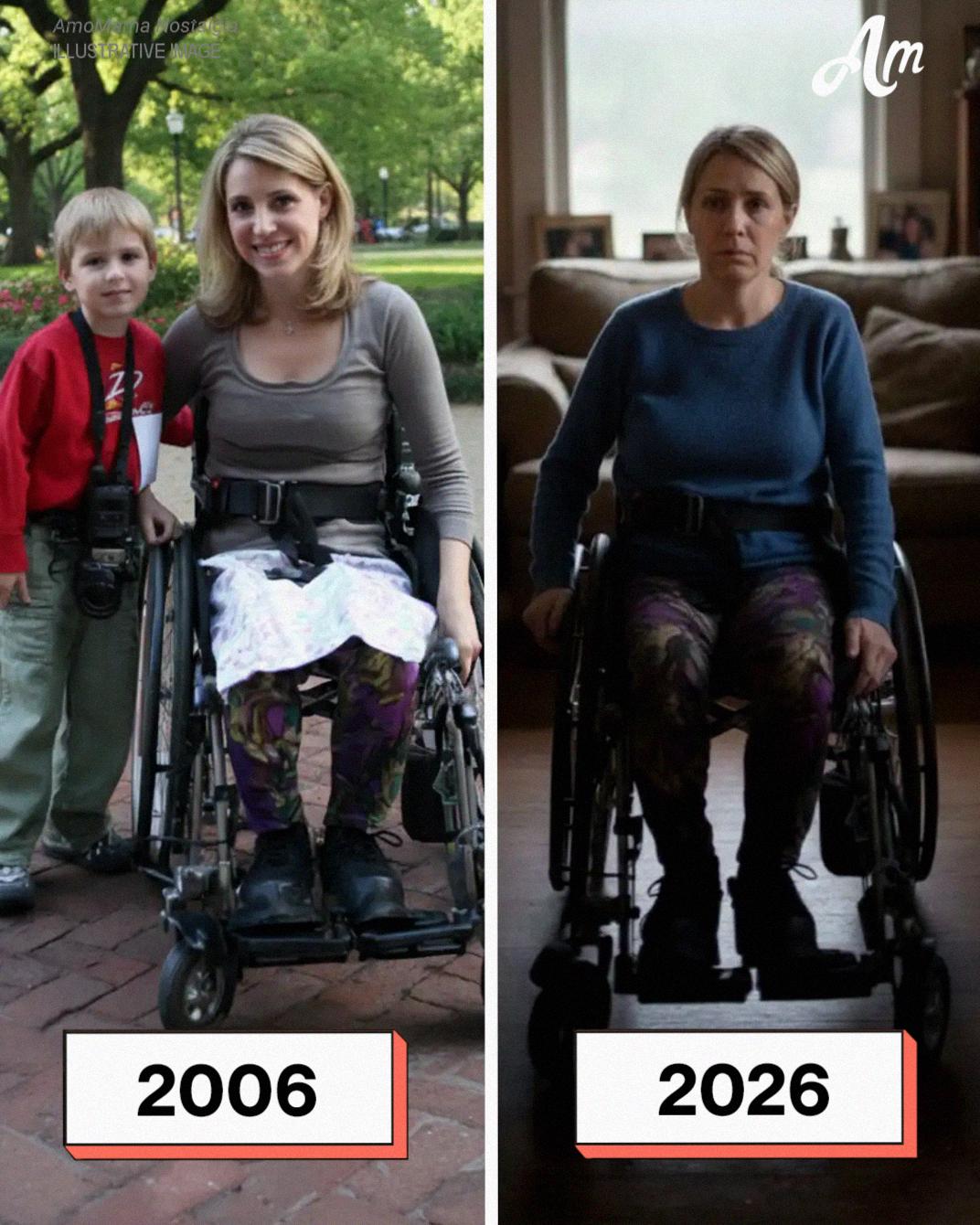 Below it was a photo: Me, 20 years younger, sitting in a hospital wheelchair. Holding five-year-old Liam in my lap.