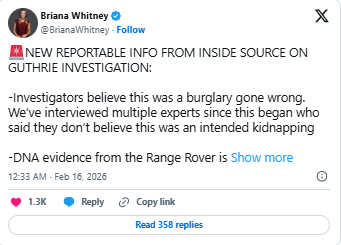 Additionally, law enforcement executed a federal search warrant at Guthrie’s residence, towed a Range Rover SUV from a restaurant parking lot as part of the probe, and briefly detained a driver during a related traffic stop — though no charges have been filed in connection with the disappearance.
