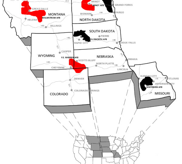 • Land‑based ICBM fields in the Great Plains region — including Malstrom Air Force Base (Montana), Minot Air Force Base (North Dakota), and other silo clusters across Montana, Wyoming, Nebraska, and the Dakotas.