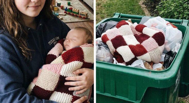I spent weeks knitting a blanket for my baby brother using the sweaters our mom had left behind. The last place I expected to find it was buried in the trash outside our house.