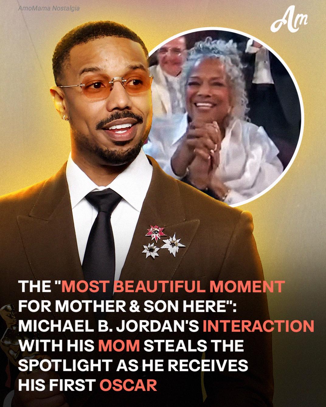 As the announcement echoed through the theater, cameras immediately cut to Jordan sitting in the audience beside his mother. Before the actor even had a chance to rise from his seat, viewers saw an emotional reaction unfolding beside him.