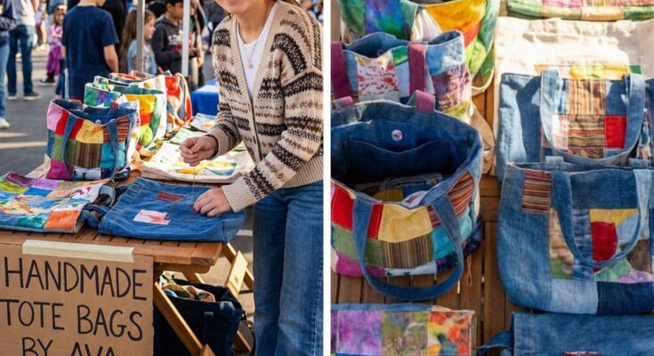 Ava’s table was near the entrance. She’d arranged 21 tote bags in two neat rows, with a small handwritten card that read: “Made from donated fabric. All proceeds go to winter clothing drives! :)”
