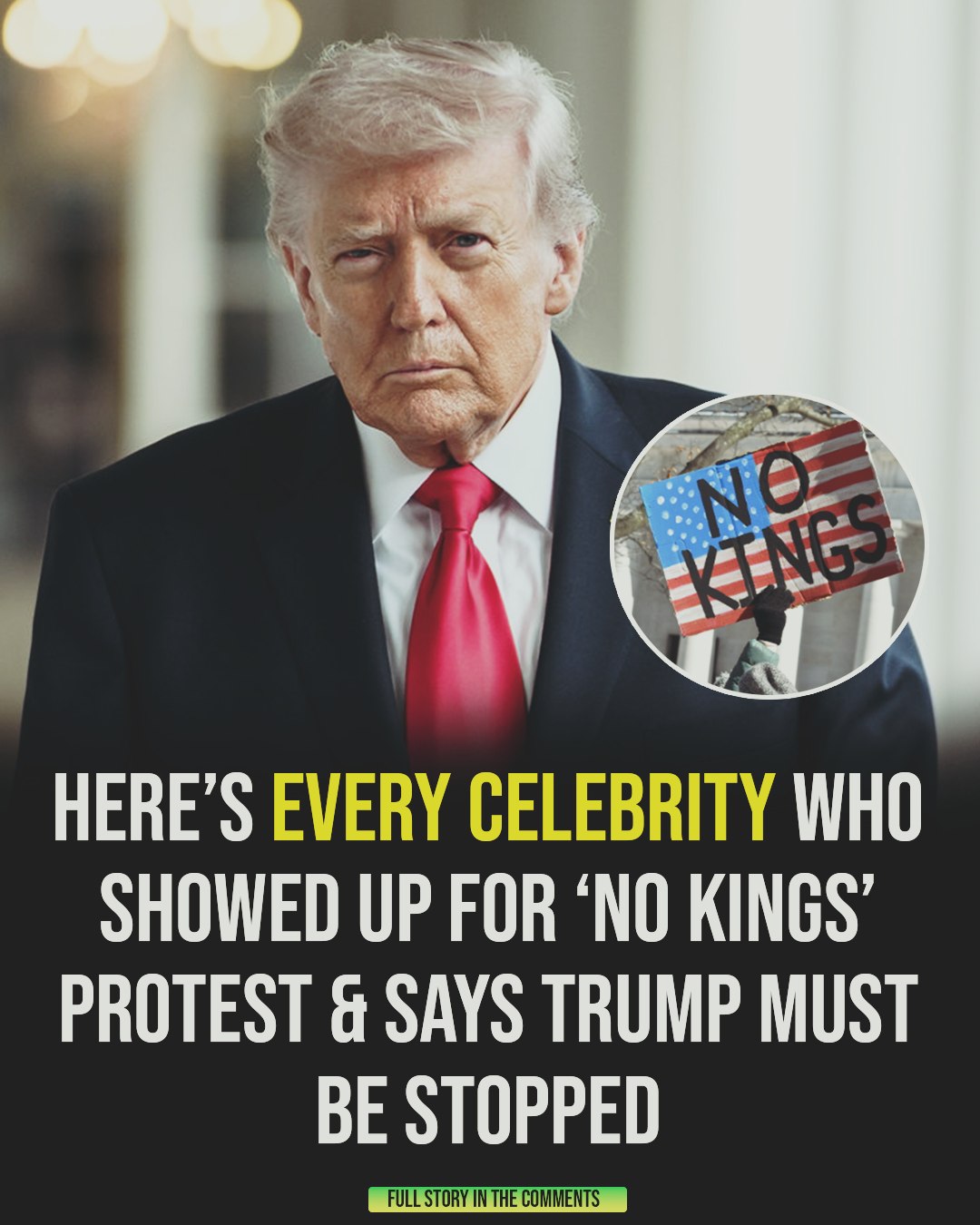 On Saturday, March 28, 2026, more than eight million people reportedly took part in the nationwide “No Kings” protests, demonstrating against Donald Trump and his policies, with many high-profile celebrities showing visible support for the movement.